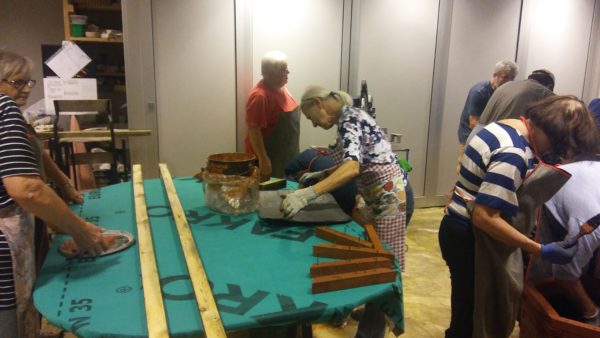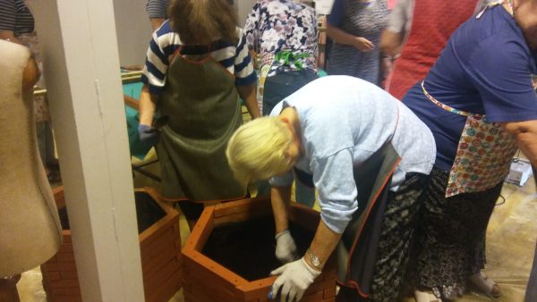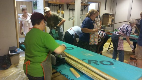 Wakacje zakończone i chyba nawet pogoda postanowiła wszystkich o tym poinformować – tym razem uczestników projektu zaskoczyła właśnie ona. Przeszkodę w postaci deszczu ominęliśmy jednak organizując zajęcia w pomieszczeniu znajdującym się w naszej siedzibie. Raz-dwa pozsuwaliśmy ściany zyskując przestrzeń do prac stolarskich. Bo przecież deszcz nie pokrzyżuje planów, jakie nasze aktywne pani i panowie mieli na czas zajęć. W ramach spotkania seniorzy kontynuowali przygotowywanie elementów drewnianych do pergoli i donic drewnianych. Z zapałem działając i przeciwstawiając się niesprzyjającej aurze zakończyli kolejny etap prac. Wytrwałości gratulujemy!