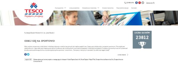 Przez ostatni miesiąc w Świętochłowicach i Rudzie Śląskiej możnabyło głosować na 1 z 3 projektów złożonych i zakwalifikowanych w ramach programu sieci sklepów TESCO. Tak naprawdę to nie nasza zasługa, że znaleźliśmy się na II miejscu – to wasze wsparcie i zaufanie za które dziękujemy!