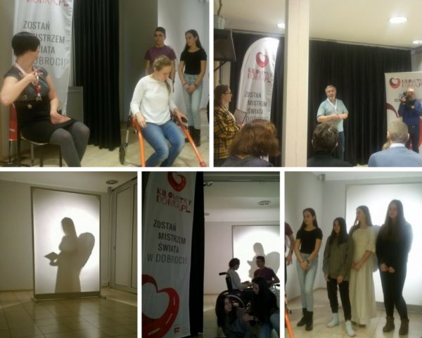 Nasza inauguracja odbyła się 1 marca o godzinie 12. Towarzyszyła nam Młodzież z Gimnazjum nr 1 z oddziałami integracyjnymi w Bytomiu przedstawiając Etiudę pt.: „Zmęczone skrzydła”. Dzięki spektaklowi przypomnieliśmy sobie jak ważny jest drugi człowiek. Wszystko to zostało uwiecznione dzięki Śląskiej Telewizji Miejskiej, która również była naszymi gośćmi. Bardzo dziękujemy Szanownym Gościom, którzy oklaskiwali naszych artystów. Oczywiście dodatkowo odbyła się również pierwsza akcja promocyjna oraz zbiórka funduszy zorganizowana przez uczestników świetlicy środowiskowej.