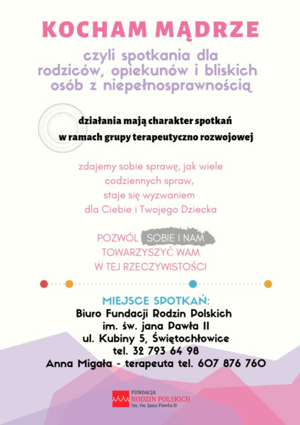 Program – jest. Ulotki i plakaty – gotowe. Teraz tylko czekamy na rodziców, opiekunów, bliskich osób niepełnosprawnych i ich samych. Mamy silną motywację i chęć do działania. Teraz tylko dotrzeć do jak największej ilości osób, by pokazać im, że są miejsca w których mogą otrzymać kompleksową pomoc. Taki ma być właśnie projekt „Kocham Mądrze”.