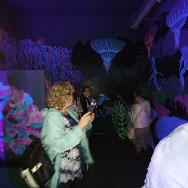 Wizyta w Muzeum Światła pozwoliła seniorom wykorzystać umiejętności zdobyte podczas warsztatów, robić zdjęcia i nagrywać filmy w pomieszczeniach z efektami świetlnymi i interaktywnymi efektami specjalnymi.