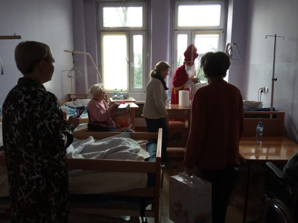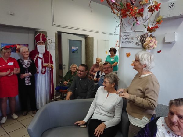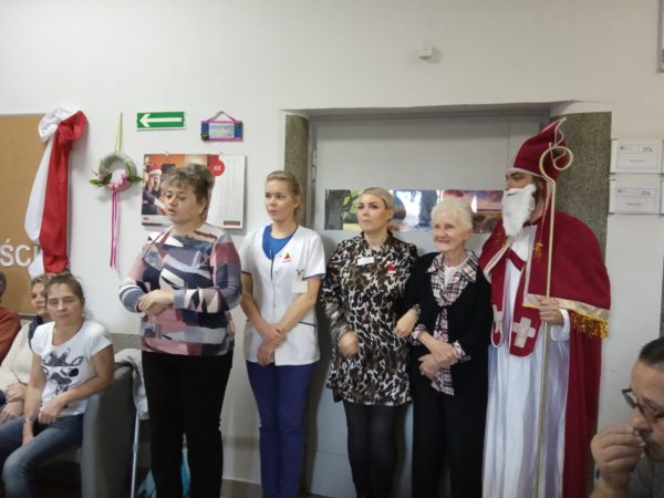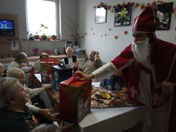 Dnia 6.XII. w ramach projektu „Seniorzy seniorom” pięciu uczestników projektu i dwie osoby prowadzące warsztaty odwiedziło świętochłowicki ZOL. Tam 60 pensjonariuszy o różnym stopniu niepełnosprawności otrzymało od Mikołaja świąteczne paczki. W paczkach znalazły się słodycze pozyskane podczas zbiórek w Biedronce, upominek wykonany w trakcie warsztatów rękodzieła, ceramicznych i szkła artystycznego oraz kwiatek gwiazda wigilijna.
