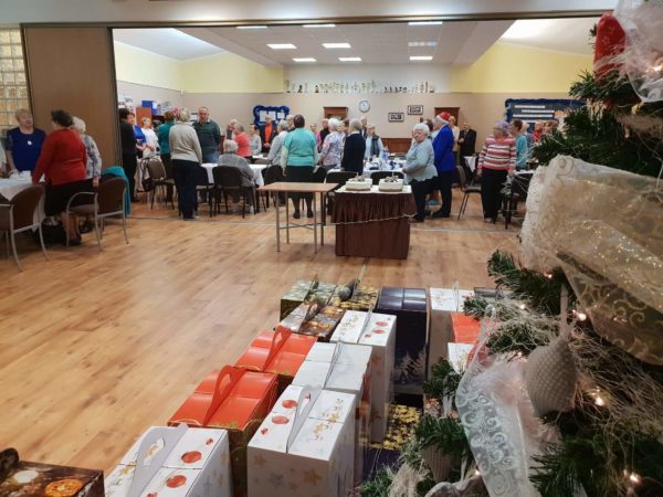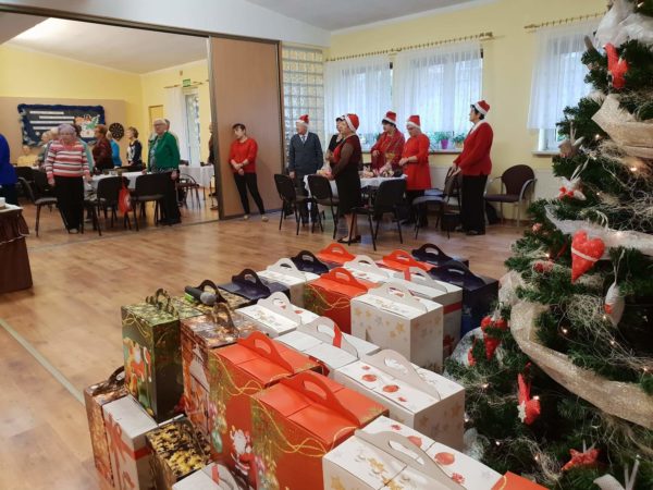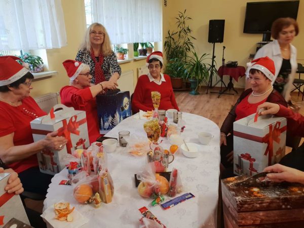 Jednym z założeń projektu, w którym uczestniczą nasze seniorki i seniorzy było zorganizowanie akcji na rzecz innych osób w wieku senioralnym zarówno w Świętochłowicach jak i Rudzie Śląskiej. Przygotowania trwały praktycznie od samego początku, bowiem działając w pracowniach artystycznych przygotowywane były upominki rękodzielnicze, następnie organizowana była akcja zbiórki żywności i artykułów do świątecznych paczek, by później wspólnie je zapakować i wręczyć rówieśnikom. Tak też się stało 6 i 7 grudnia.
