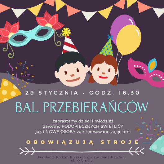 Z kolei na wspólną zabawę przy muzyce zapraszamy nie tylko podopiecznych świetlicy, ale także dzieci i młodzież, które chciałyby zobaczyć jak spędzamy czas, by zasilić szeregi Świetlików! Co ważne, na zabawę przychodzimy w stroju karnawałowym. Będzie kolorowo i radośnie!
