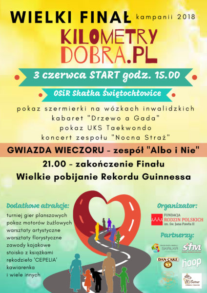 Miasta całej Polski zapełnią się kilometrami dobra! Wśród nich także i Świętochłowice. Zapraszamy serdecznie na organizowany przez fundację festyn – będzie mnóstwo atrakcji, koncerty oraz możliwość zapisania się na kartach historii udziałem w biciu rekordu Guinnessa!