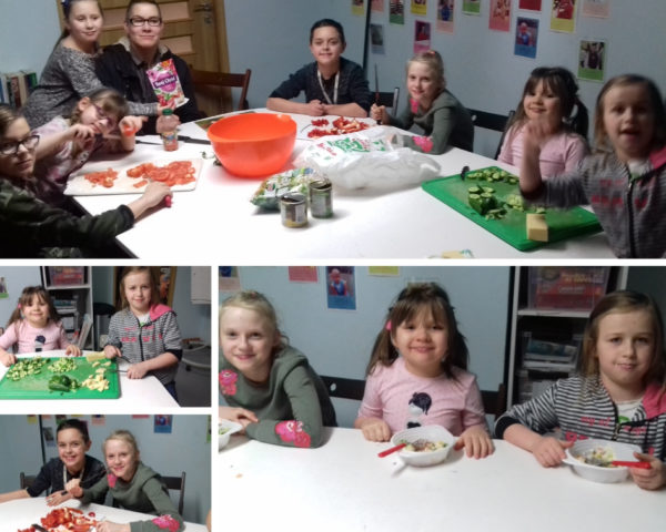 Z kolei 12 marca w progi fundacji zagościli rodzice oraz rodzeństwo Świetlików. A to z racji „Dnia Otwartego” organizowanego w placówce. Tym razem pani Ewa z podopiecznymi zaserwowali (dosłownie) mnóstwo pyszności – były bowiem warsztaty kulinarne. Czas upłynął bardzo sympatycznie i smacznie.
