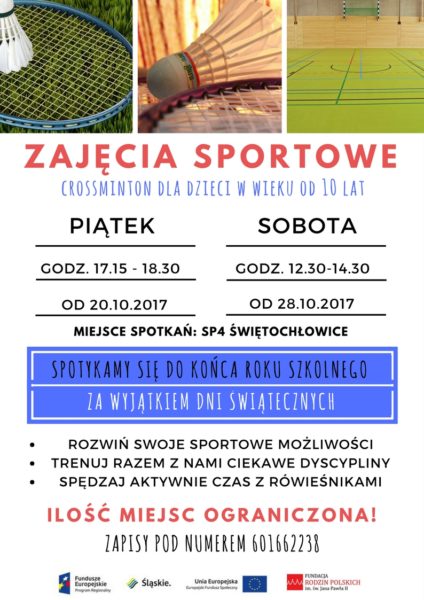 W ramach trwającego projektu „Moja świetlica – mój świat” otwierają się nowe możliwości spędzania czasu na sportowo. We współpracy z dyrekcją SP4 w Świętochłowicach rozpoczynamy zajęcia crossmintona korzystając z obiektów sportowych szkoły – boiska oraz sali sportowej. Zapraszamy dziewczyny i chłopaków w wieku 10+ by do nas dołączyć!