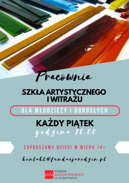 W ramach naszej działalności proponujemy zajęcia w pięciu pracowniach: ceramicznej, rękodzieła, ikonopisania, fotograficznej oraz pracowni witrażu uzupełnionej o warsztat szkła artystycznego. Zajęcia ruszają już 4 września, dlatego też zachęcamy do zgłaszania się mailowo: kontakt@fundacja-kopia.powerdev.pl lub też bezpośrednio fundacji.