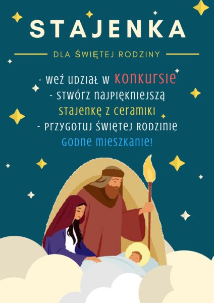 Tak się złożyło, że w listopadzie ruszają warsztaty ceramiki dla podopiecznych projektu „Moja świetlica – mój świat”. Jednocześnie cały czas w środy i czwartki od 16.00 do 17.30 realizujemy spotkania z najmłodszymi na tychże warsztatach. Zrodził się więc pomysł, by zaangażować wszystkich we wspólną inicjatywę, a przy okazji wprowadzić ducha zdrowej rywalizacji. Właśnie w ten sposób powstał konkurs „Stajenka dla Świętej Rodziny”.