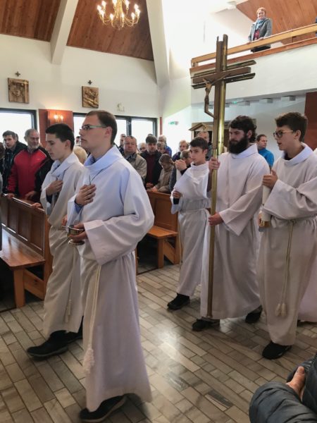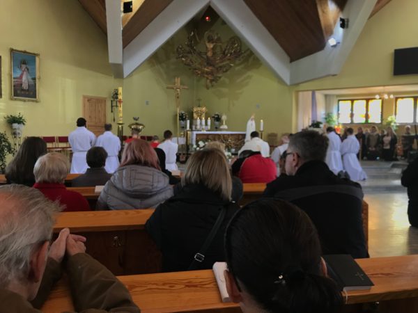 Punktualnie o 10.30 w Kościele Miłosierdzia Bożego wszystkich przybyłych przywitał ks. proboszcz Stanisław Furczoń. Po prelekcji odbyła się Msza Święta koncelebrowana przez księży z naszej parafii. Uroczystość uświetnił występ młodzieżowego zespołu parafialnego AETERNUM. Z kolei na tę okoliczność kazanie wygłosił ks. wikariusz Grzegorz Gaweł. Po eucharystii rozpoczęła się adoracja Najświętszego Sakramentu. Następnie zaproszono pielgrzymów do poczęstowania się grochówką, ciepłymi napojami oraz domowymi wypiekami. O 13.30 wierni wyruszyli w procesji różańcowej do kościoła pw. Opatrzności Bożej.