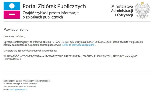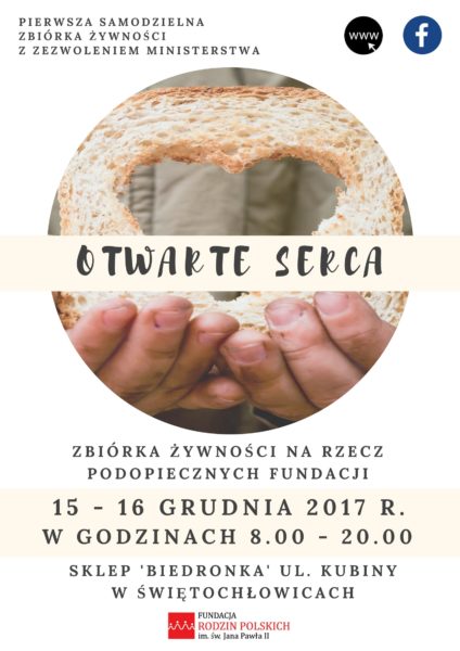Na dniach otrzymaliśmy informację zwrotną z pozytywnym rozpatrzeniem naszej prośby. Dotyczyła ona zarejestrowania indywidualnej zbiorki publicznej, dzięki czemu mamy możliwość w dowolnym czasie organizować tego typu akcje na rzecz potrzebujących rodzin. „OTWARTE SERCA” – tak nazwaliśmy nową formę samodzielnej działalności. Jesteśmy bardzo pozytywnie nastawieni i liczymy, że dzięki temu możliwości dotarcia do najuboższych dzieci, młodzieży, dorosłych i seniorów będzie się rozszerzała.